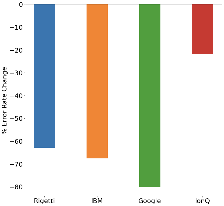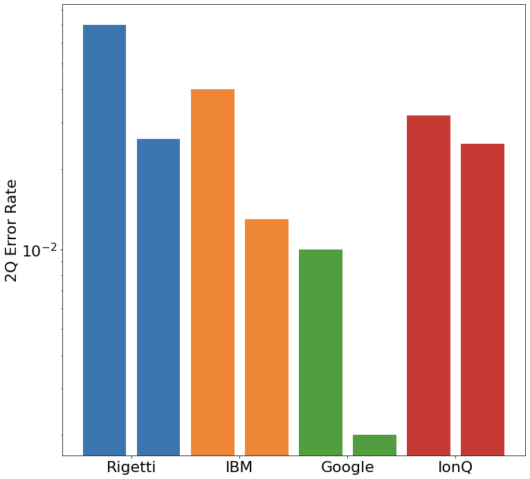 This was true at the time of investor presentation creation, but if you are willing to believe Jay Gambetta, IBM now has the best error rates, showing 3 9s of fidelity in their latest revision to the Falcon processor.